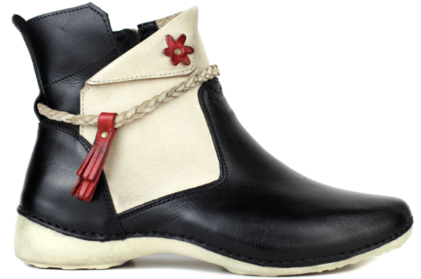 Bota Alívio Feminina em Couro Legítimo e Palmilha Gel - Preto /Off /Vermelho - Sola Off (AL002)
