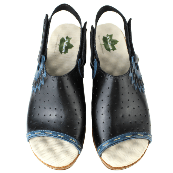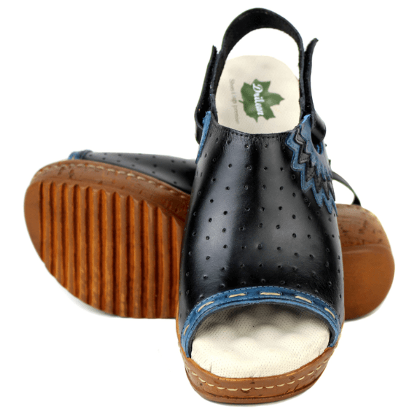 Sandália Anabela Feminina de Couro Legítimo com Palmilha Gel - Preto /Azul (NI023)
