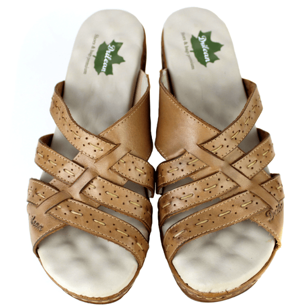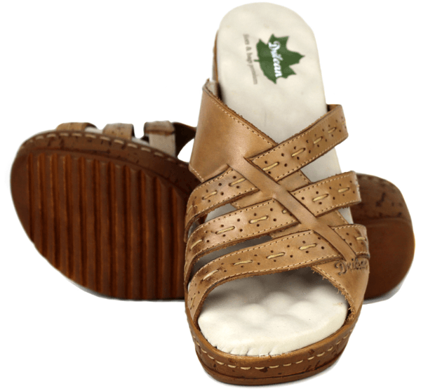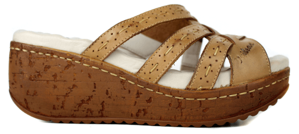 Sandália Anabela Feminina de Couro Legítimo e Palmilha Gel - Caramelo (NI038)