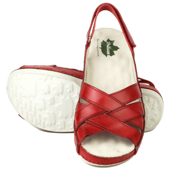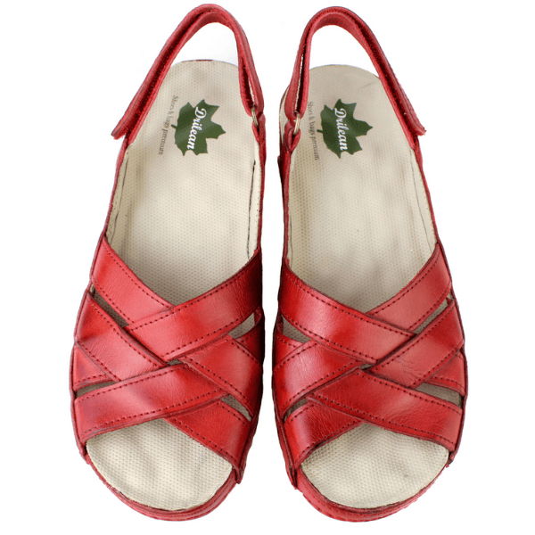 Sandália Bem-Estar Ortopédica em Couro Legítimo - Vermelho - Sola Off (BE028)