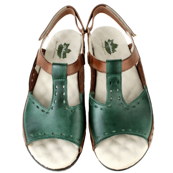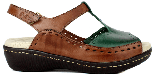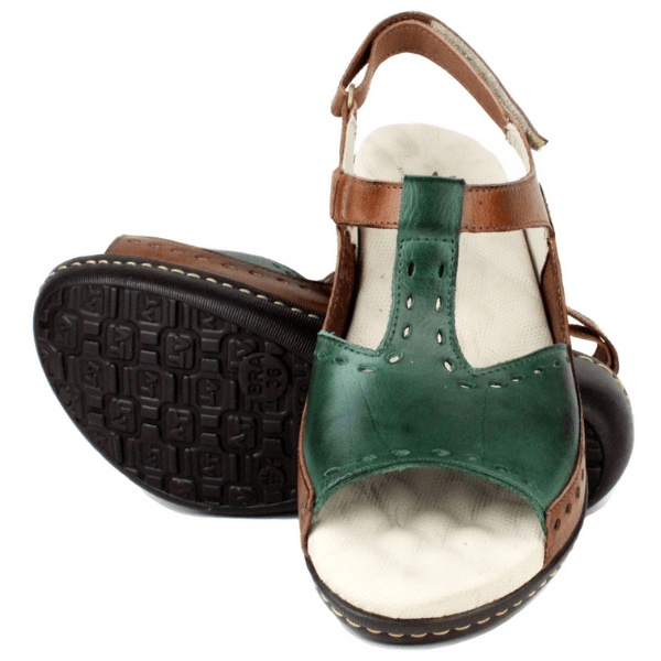 Sandália Feminina Anatômica em Couro Legítimo e Palmilha Gel - Castanho /Verde (MA040)