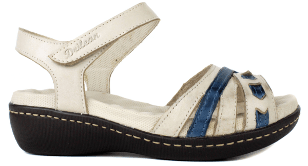 Sandália Feminina Anatômica em Couro Legítimo e Palmilha Gel - Off White /Azul (MA001)