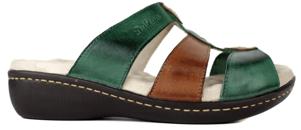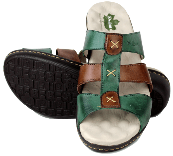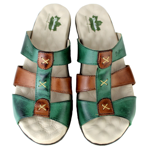 Sandália Feminina Anatômica em Couro Legítimo e Palmilha Gel - Verde/ Castanho (MA022)