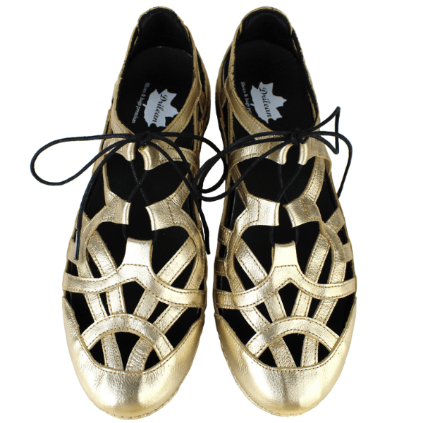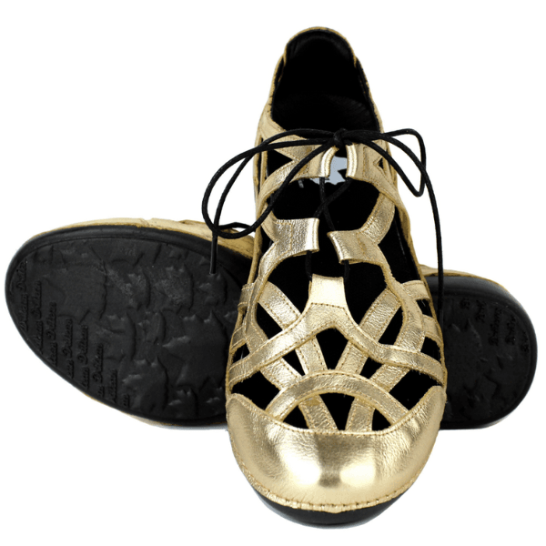 Sapatilha Feminina em Couro Legítimo e Palmilha Gel - Ouro - Sola Preta (AL067)