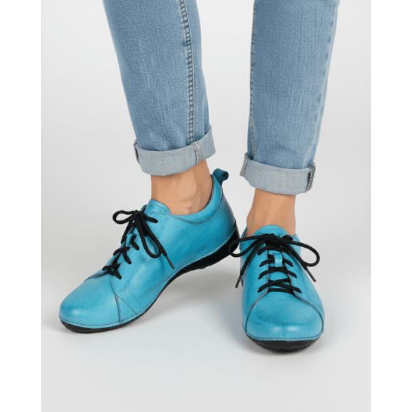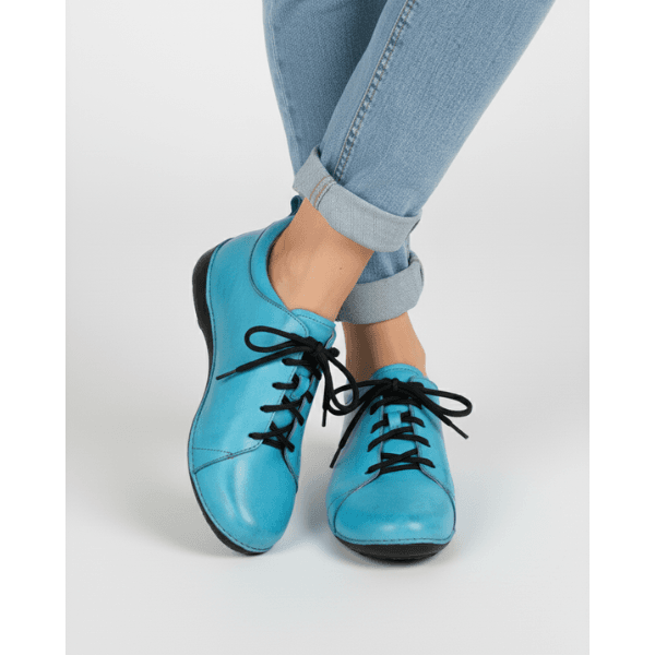 Tênis Alívio Feminino em Couro Legítimo e Palmilha Gel - Turquesa - Sola Preta (AL071)