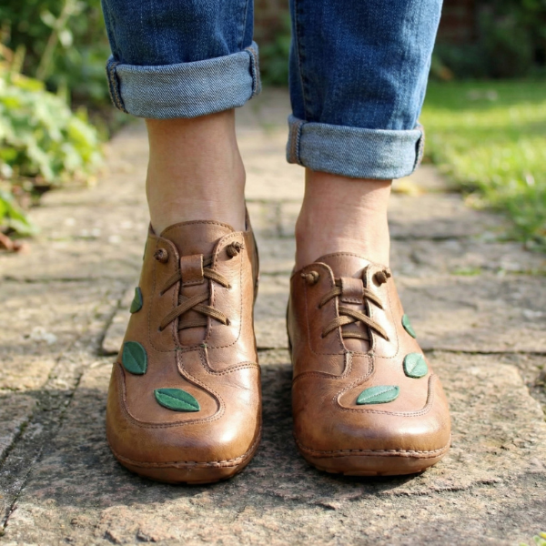 Tênis Alívio Feminino em Couro Legítimo e Palmilha Gel - Castanho /Verde - Sola Castanho (AL031)
