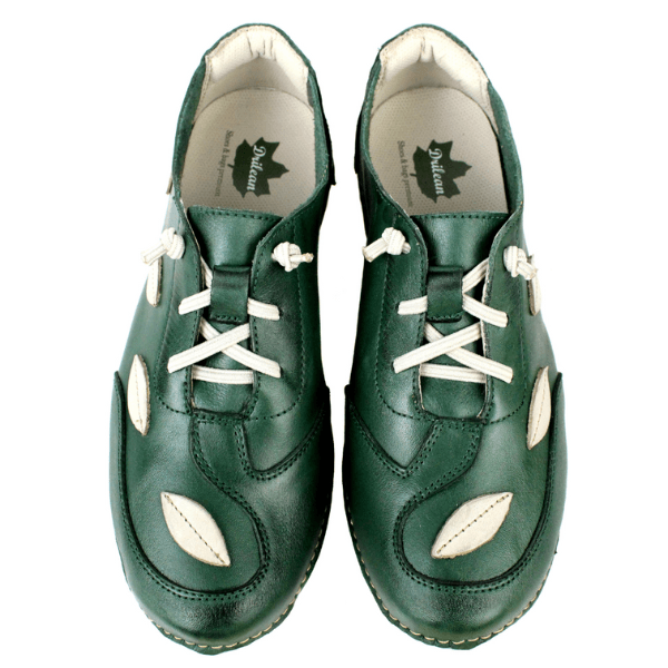 Tênis Alívio Feminino em Couro Legítimo e Palmilha Gel - Verde/Off White - Sola Off (AL031)