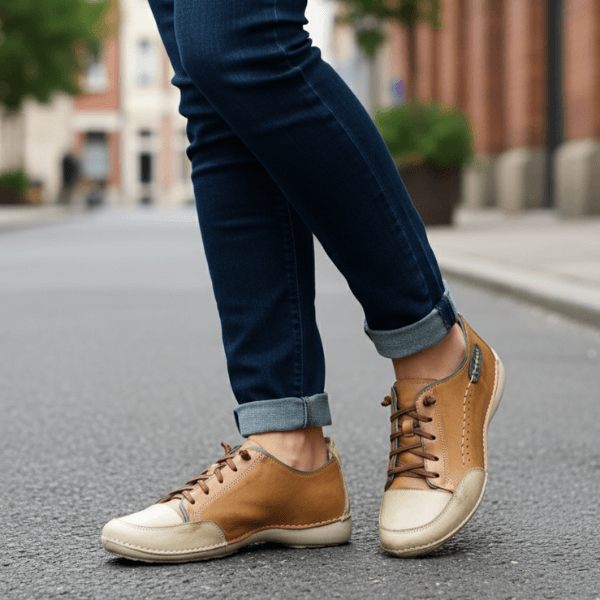 Tênis Feminino de Couro Legítimo com Palmilha em Gel - Caramelo/ Areia/ Verde - Sola Off (AL008)