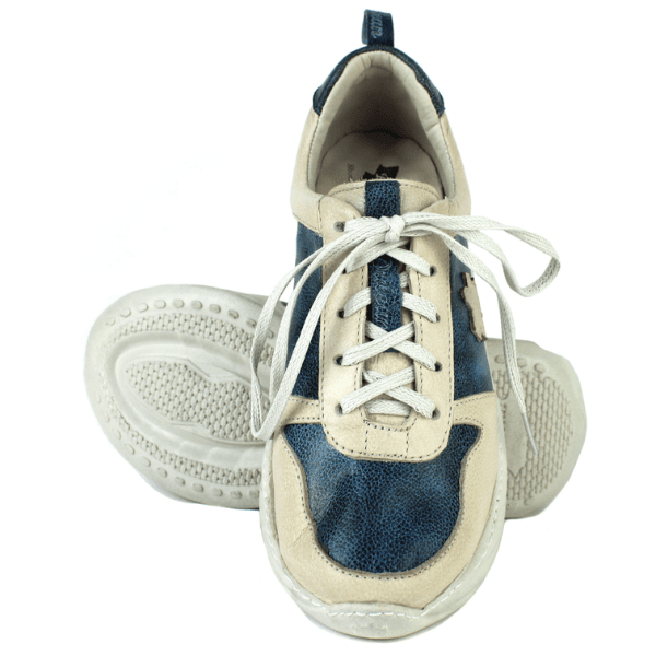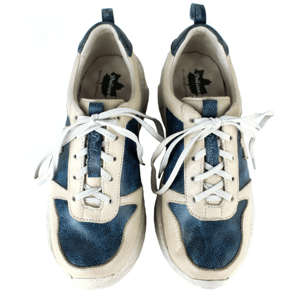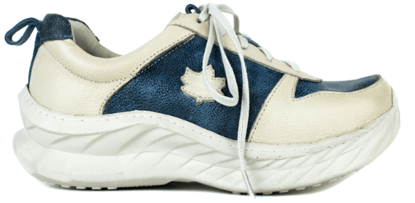 Tênis Feminino em Couro Legítimo com Palmilha em Gel - Bicolor Azul - Off (CAF001)