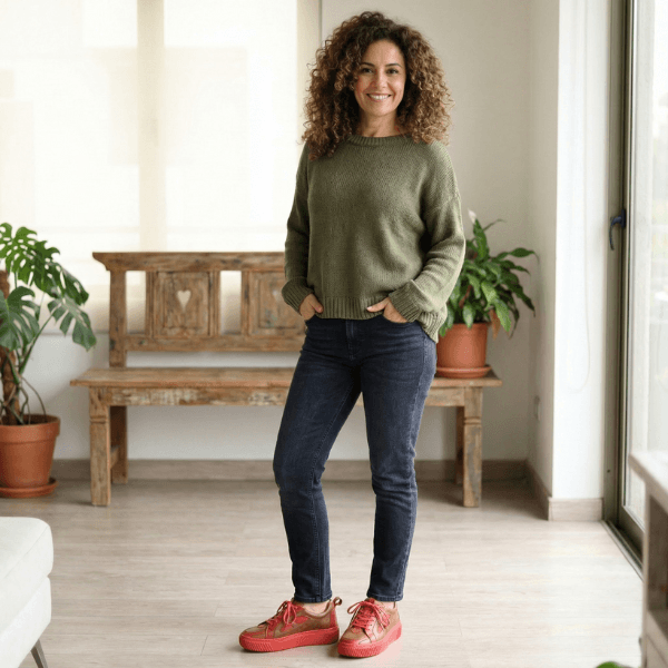 Tênis Feminino em Couro Legítimo com Palmilha em Gel - CASTANHO /VERMELHO - SOLA VERMELHA (LEV004)