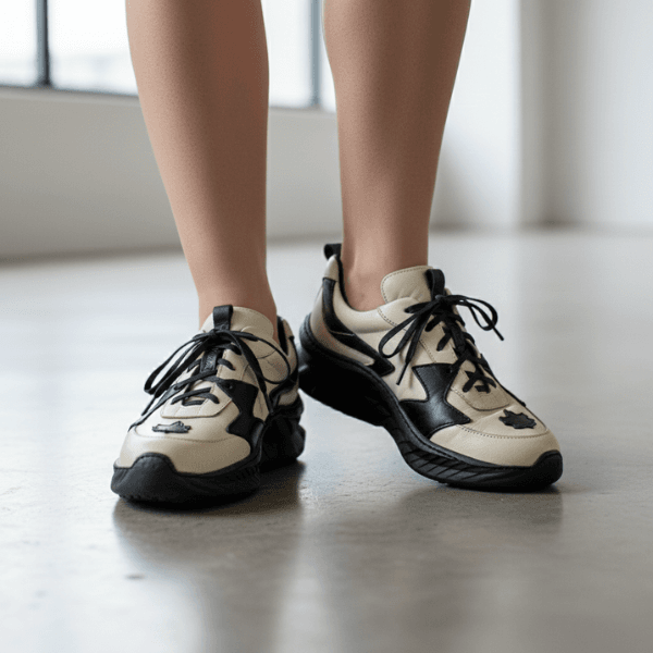 Tênis Feminino em Couro Legítimo com Palmilha em Gel - Off /Preto - Sola Preta (CAF005)